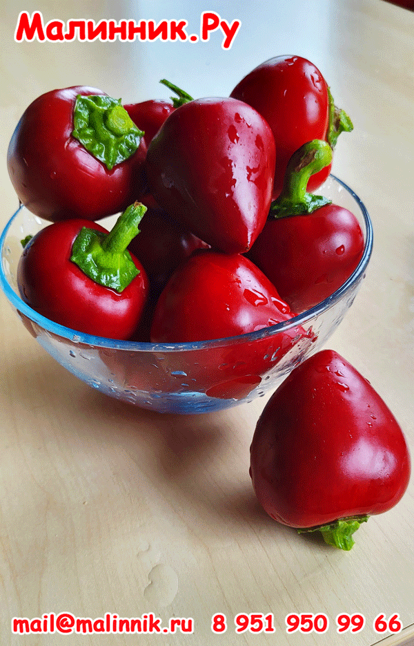 Маусик — исключительно удачный сорт любительской селекции! Сорт-мышонок — маленький, аккуратный, ловкий весь какой-то. Кусты небольшие, компактные, при этом просто обсыпные — только успевай урожай снимать! Выращивать можно и на грядке, и в парнике-теплице, и в горшке на подоконнике или балконе — Маусик неприхотлив до невероятности, везде плодоносит долго и активно. Урожайность отменная, шикарная, фантастическая! Плоды-яблочки, размером с теннисный мяч, упругие, плотные, с ТОЛСТЕННОЙ стенкой: Маусик — рекордсмен по толщине стенки среди всех сладких перцев!!! (в некоторых перчиках сердцевины нет совсем, стенки смыкаются!). А сколько сока!!! Брызжет как из фрукта! Для любителей сортов такого типа — просто подарок!