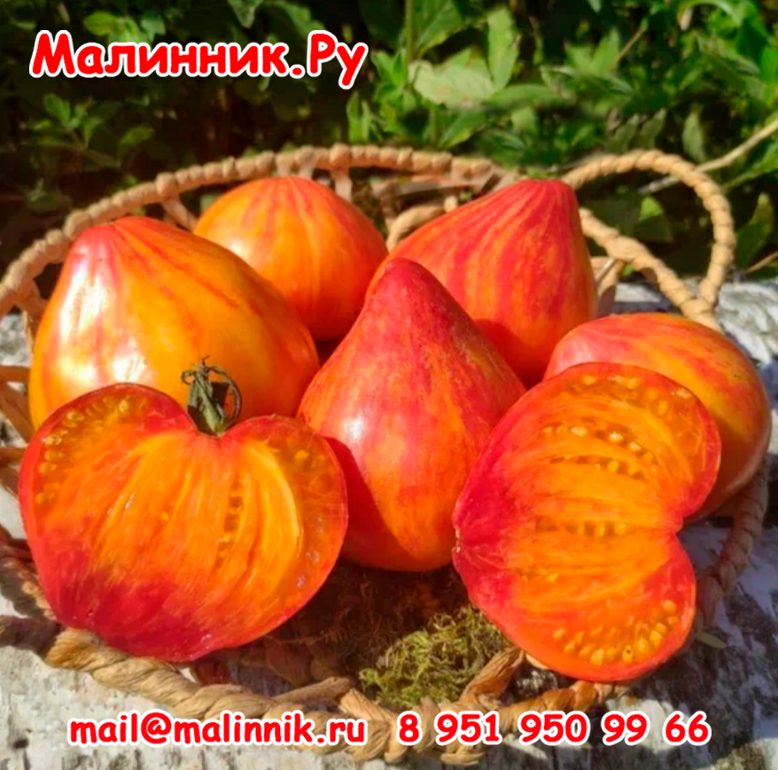ВКУС ТОМАТОВ: томатно-фруктовый с неописуемой сладостью без кислинки, напоминает спелый манго; мякоть нежнейшая, сочная, мясистая.