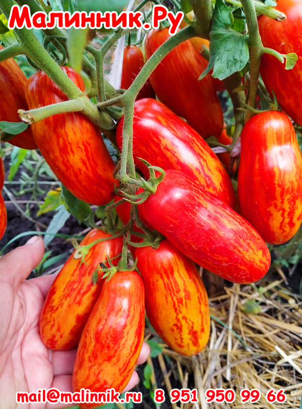 Я выращиваю этот томат:))) У меня он можно сказать самый любимый! Выращиваю в теплице(у нас холодно), Помидорки одна к одной — красивые, полосатые сливки с носиком. Очень вкусные! Где брала не помню