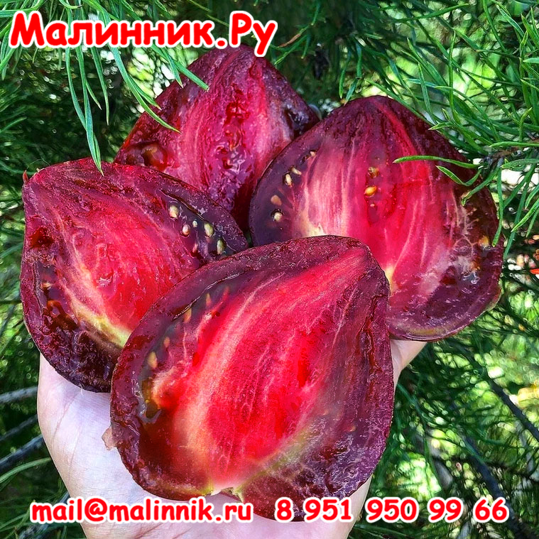 ЦВЕТ ПЛОДОВ: необыкновенно красивый — с переливами чёрно-зелёно-шоколадный! Мякоть шоколадно-алая.