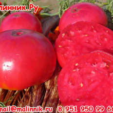среднеранн, индет, 170см, теплица, 400-600гр, вкус истинный помидорн., сбалансир-й: с яркой сладостью и тонкой кислинкой; мякоть арбузная - деликатесное, сладчайшее помидорное малиновое мясо!Сорт салатн. типа, на зиму делаем из него отменн. кач. соусы, аджики, пасты. Хорош в заморозку в виде пюре. Кожица плодов тонкая, но достаточно плотная, урожай хорошо переносит транспортировку. Для длит. хран. томаты собир. в молочн. спелости