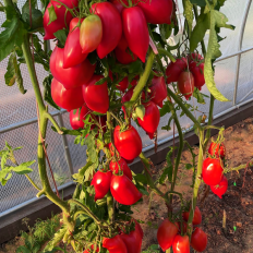 осталось семян: многосреднеспел, индет, 200см, до 300гр, вкус очень приятный, деликатесно-сладкий, с ярким помидорн. ароматом; мякоть довольно плотной структуры, не сухая, без пустот; семян мало. Используем как в соках-соусах, так и в засолках - небольшие томаты великолепны в консервац, помельче закатываем в банки целиком, покрупнее режем дольками: благодаря плотной мякоти и кожице они прекрасно держат форму. Отличн. лежкость и пригодность к длит. транспортировке98 ₽