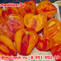 осталось семян: многосреднеспел, индет, 170см, до 600гр, для теплицы, вкус сладкий томатный; мякоть отменного качества - густая, маслянистая, плотная, с ярким помидорно-фруктовым ароматом. Салатный, как и большинство биколоров, хранится не оч. долго, но настолько вкусен, что никогда и не залёживается. Консервир. его можно даже дольками - за счёт плотной мякоти после тепловой обработки сохраняют форму, не разваливаются. Соки, томатн. пасты получаем очень густые, насыщ. янтарного цвета, с бесподобн. вкусом и ароматом!112 ₽